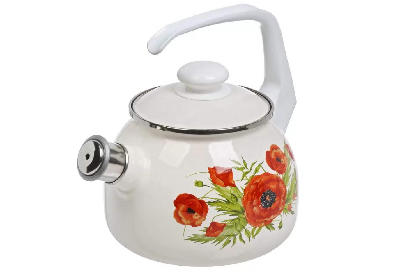 Чайник нержавейка 3л 916-437/4372 Agness Белые маки со свистком