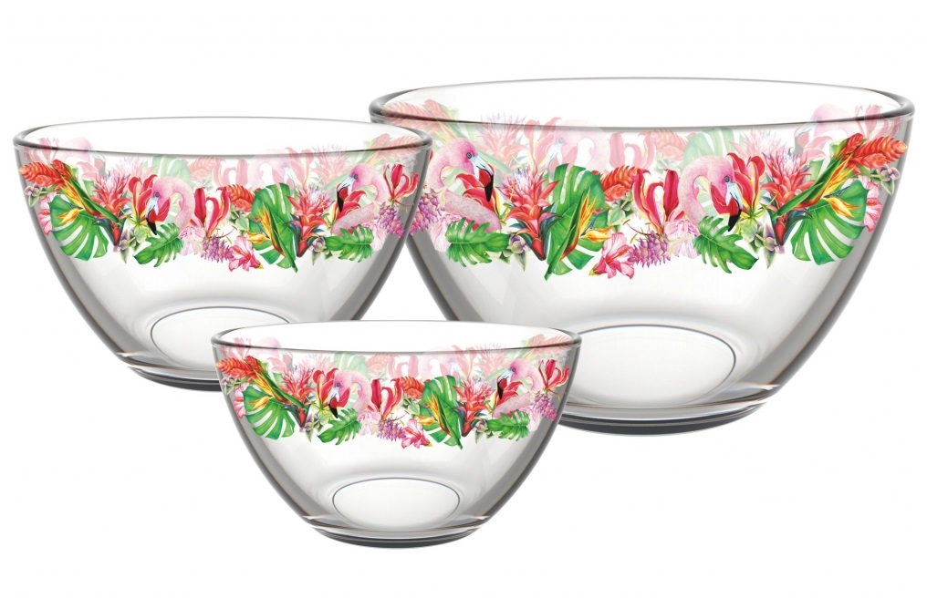 - Набор салатников стекло 3пр 1223-Д Трио Фламинго в тропиках