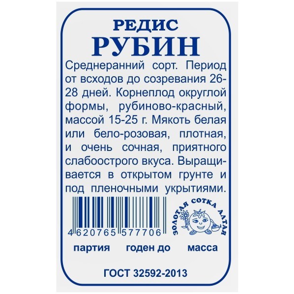 - Семена Редис Рубин 2г б/п ЗСА 7706