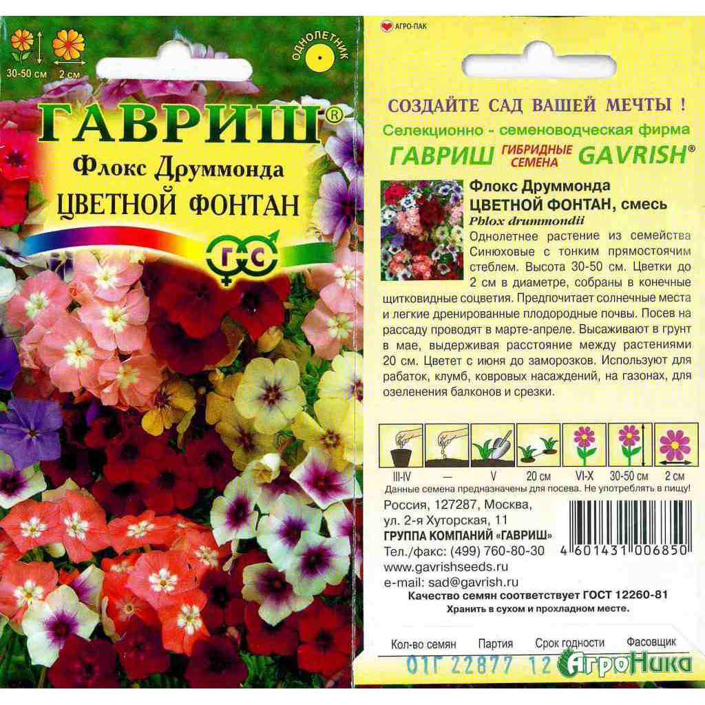 - Семена Флокс Друммонда Цветной фонтан смесь 0,1г Г 6850