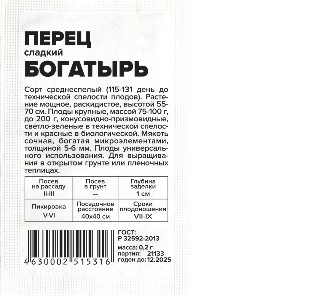 Семена Перец Богатырь 0,2г б/п ЗСА 5917
