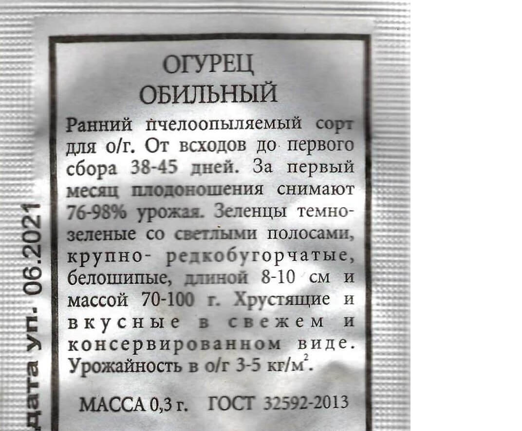 Семена Огурец Обильный 0,3г б/п ЗСА 5252