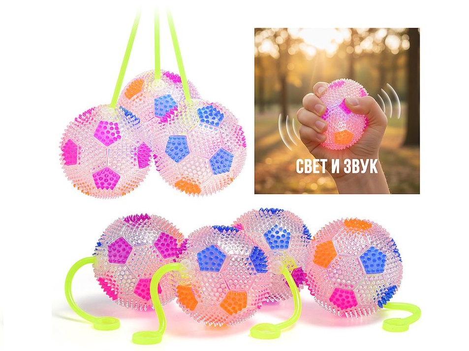 Мяч прыгун 415 на резинке, свет, 6,5см