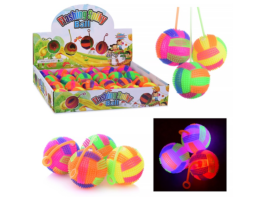 Мяч с шипами 409 на резинке, свет