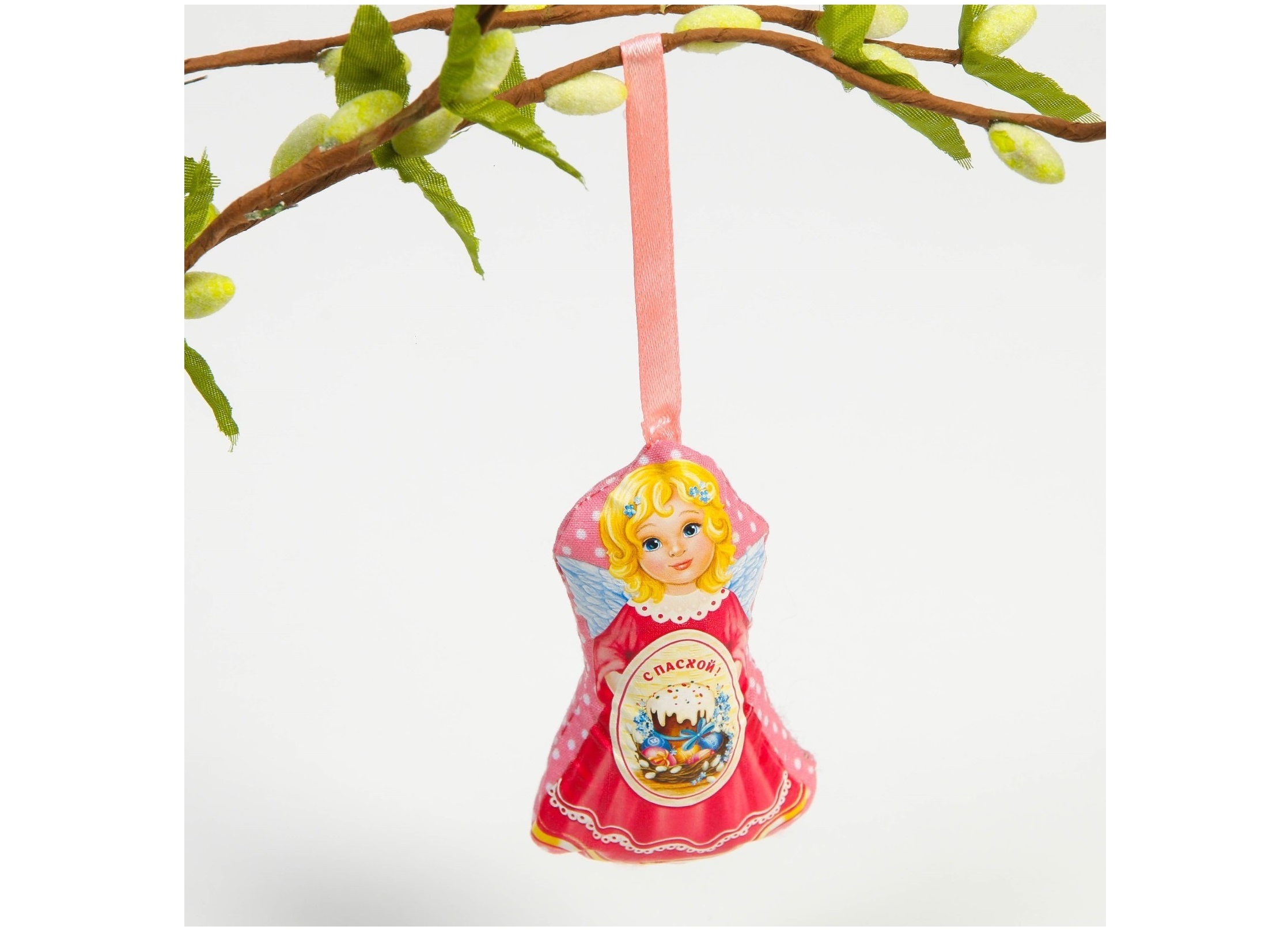 Сувенир Пасхальный Ангел с куличом на ленте 3863763 6,5*9,7см