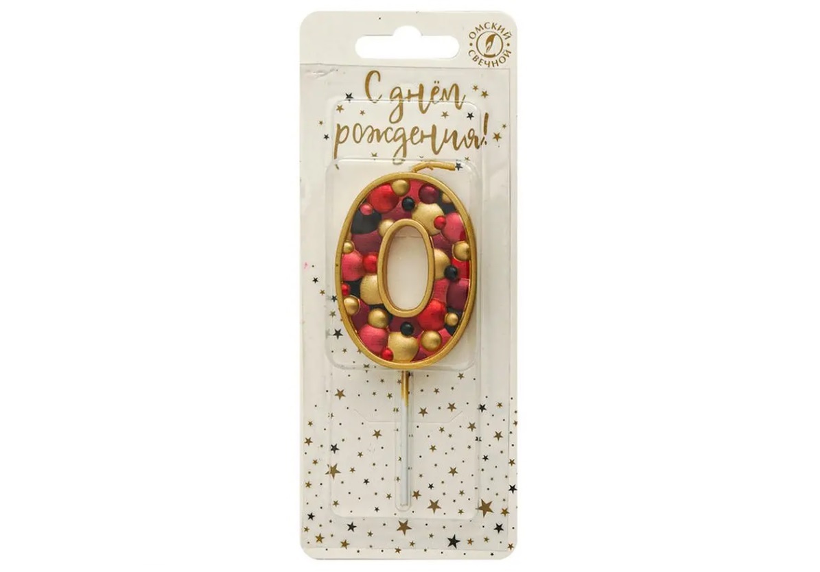 Свеча-цифра "0" Золото пузырьки В5570