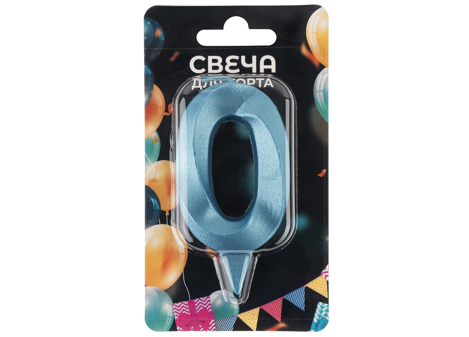 Свеча-цифра "0" Король желаний голубая 112-490