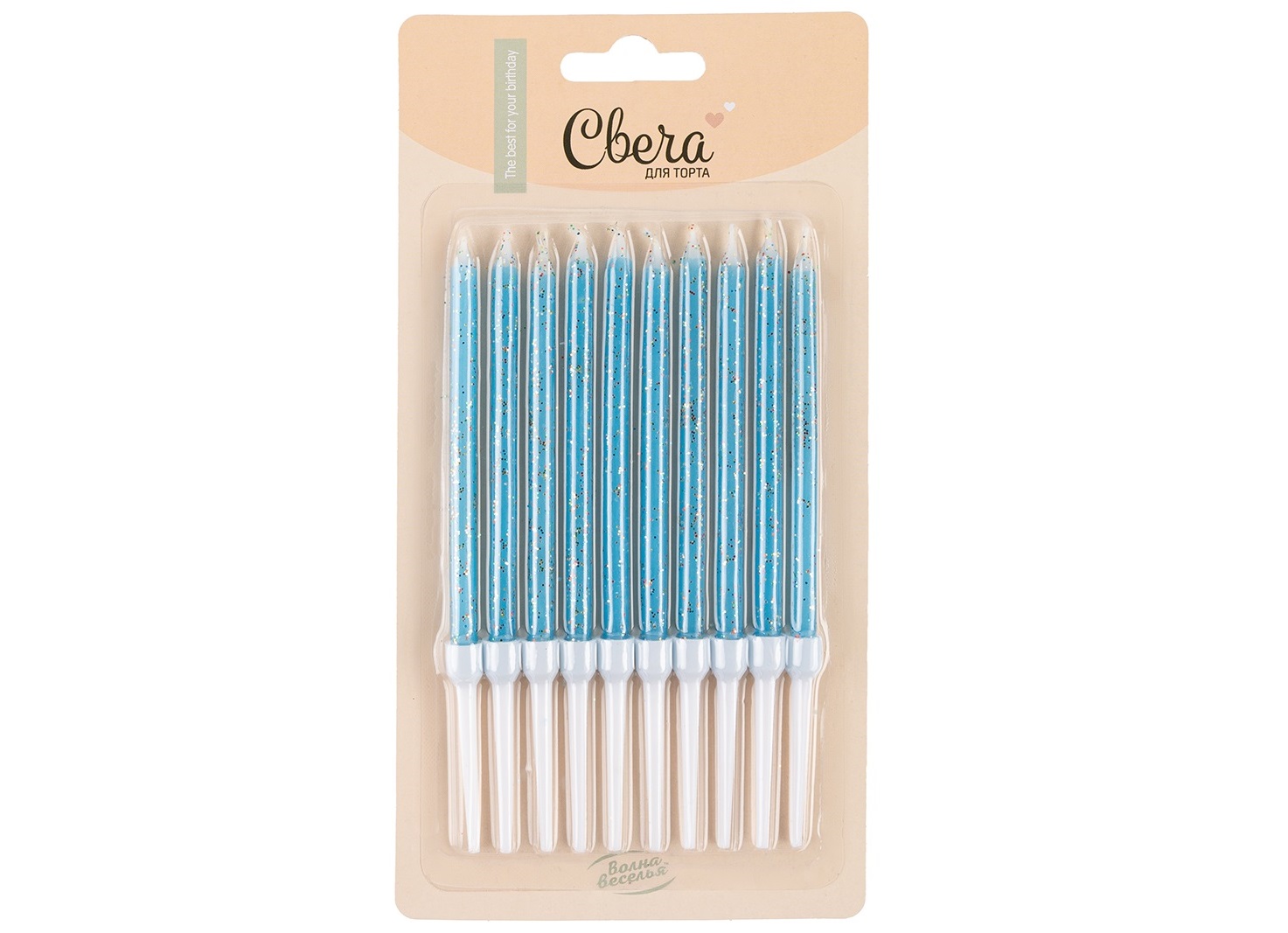- Свечи для торта 132515 Голубой с блесками 10шт
