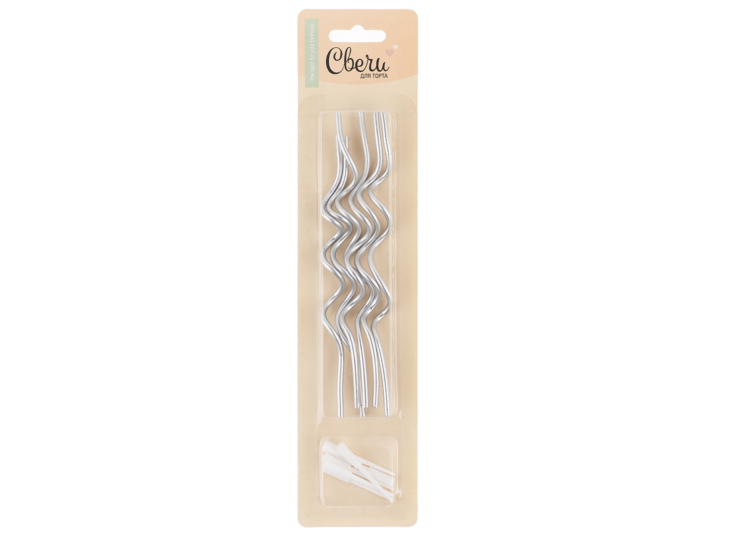 - Свечи для торта 802705 Тонкие спирали серебро 6шт