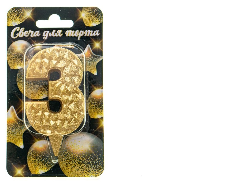- Свеча-цифра "3" Айсберг золотая с блеском Ч46374