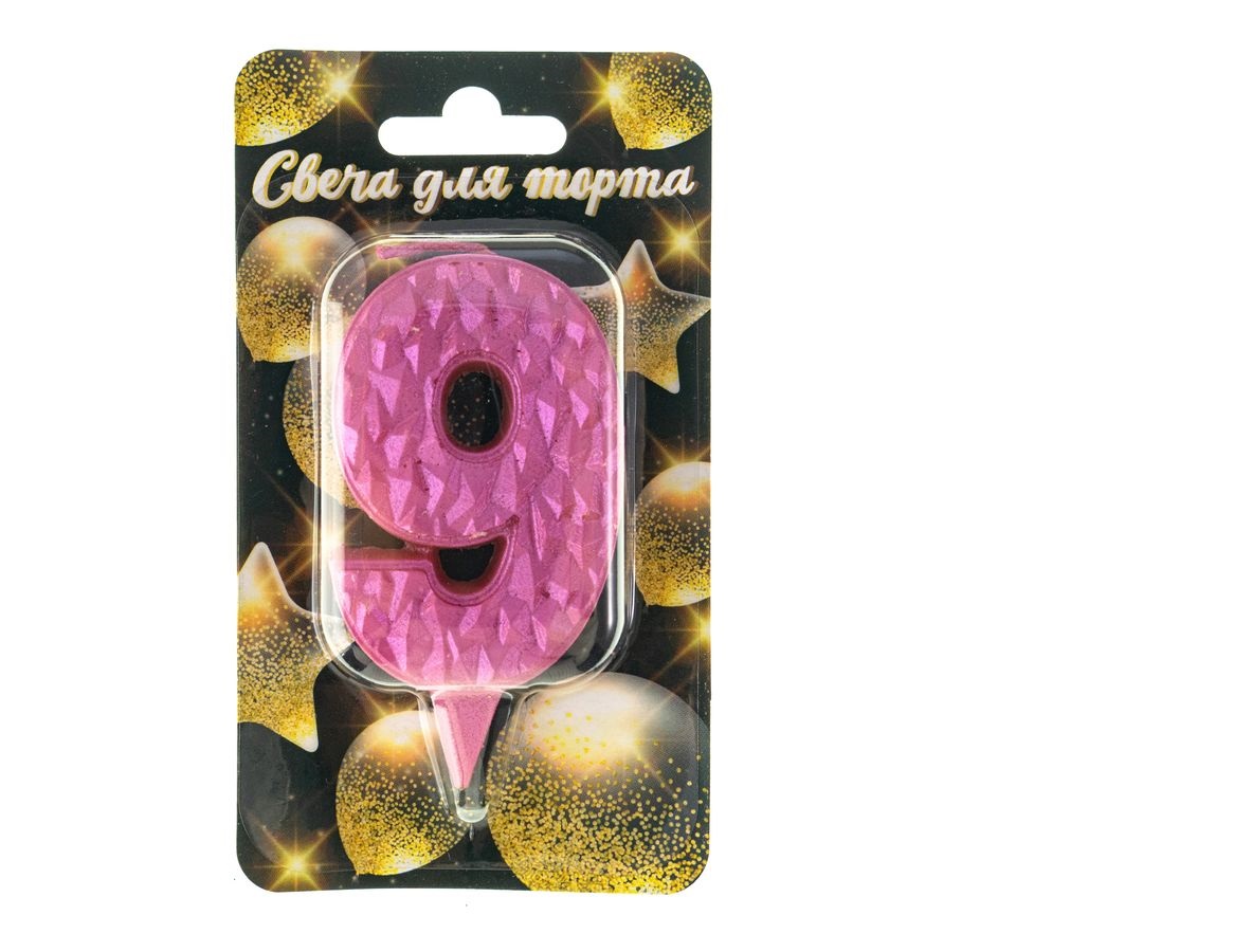 - Свеча-цифра "9" Айсберг розовая Ч46400