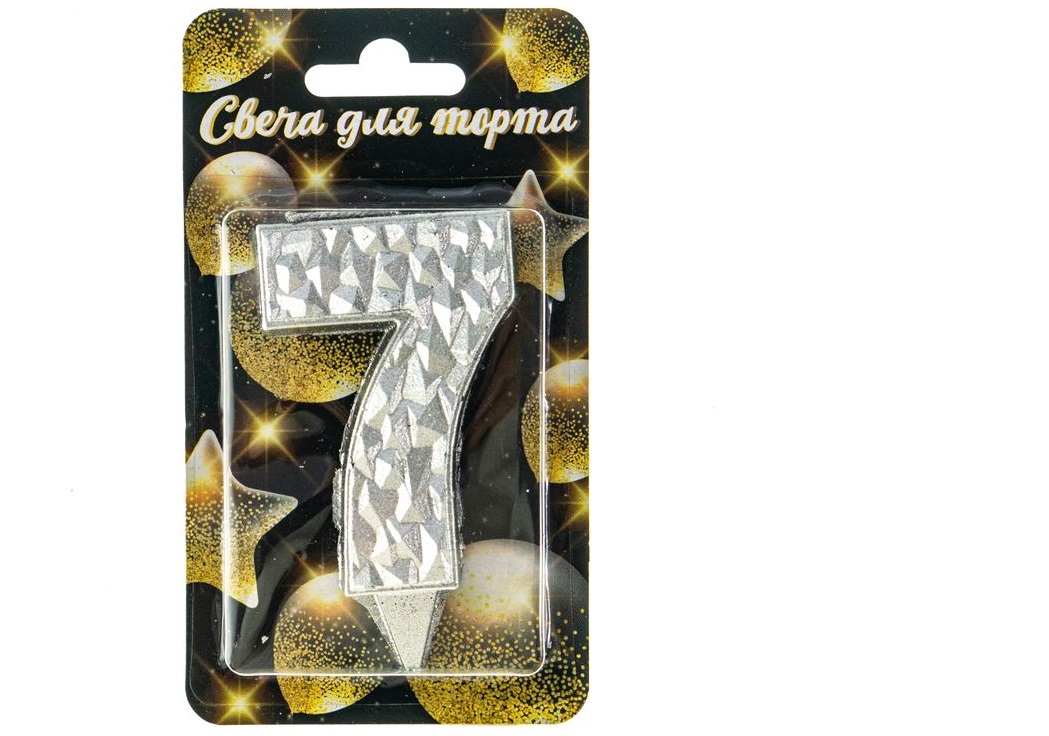- Свеча-цифра "7" Айсберг серебряная с блеском Ч46388
