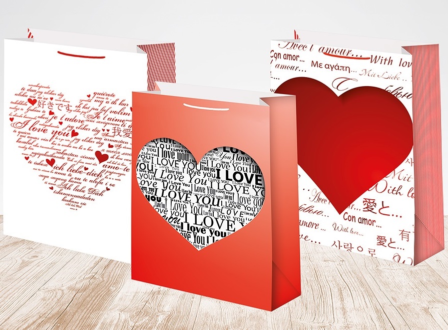 Упаковочная сумочка 19*26 6333 Сердца ассортимент Крафт
