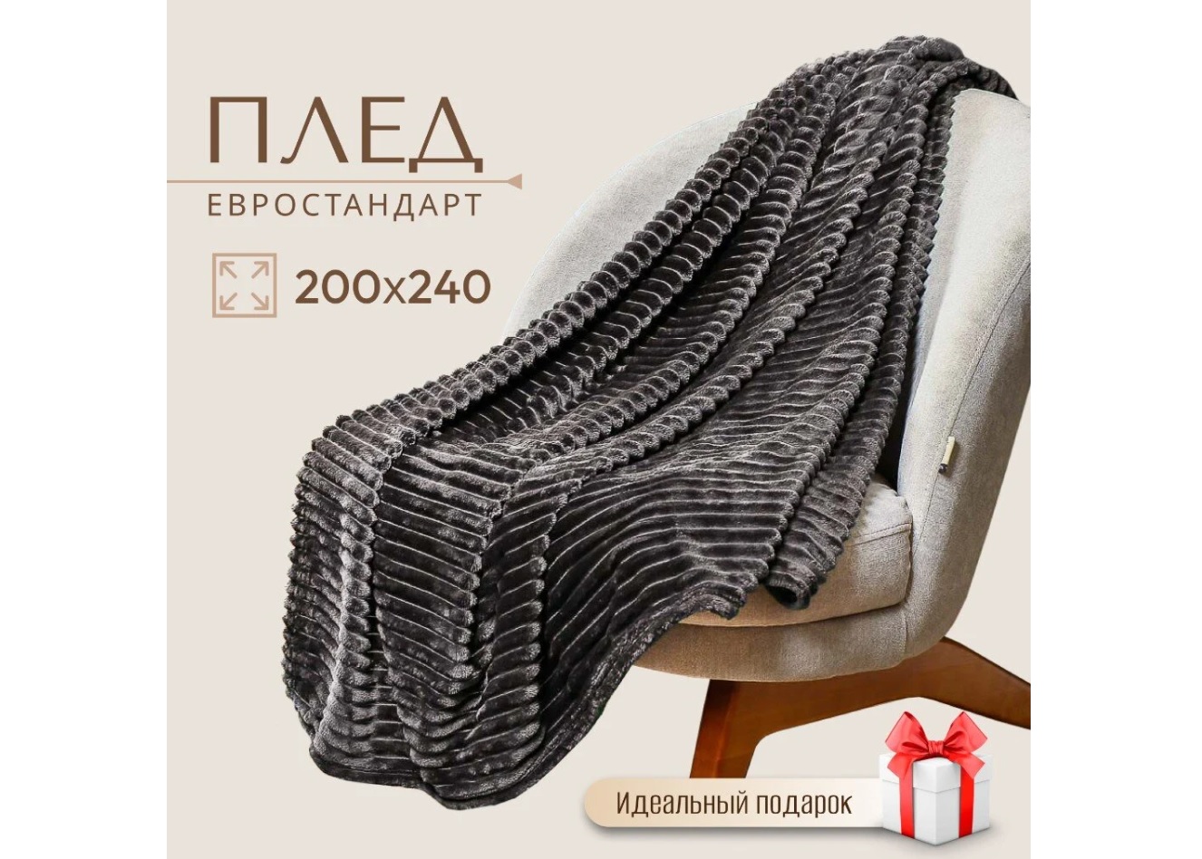 - Плед-покрывало 220*240 Silvano Неаполь темно-серый 1055