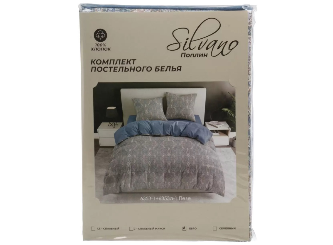 Постельное Евро Silvano 30/409-PC-SLV/0974 поплин (без простыни)