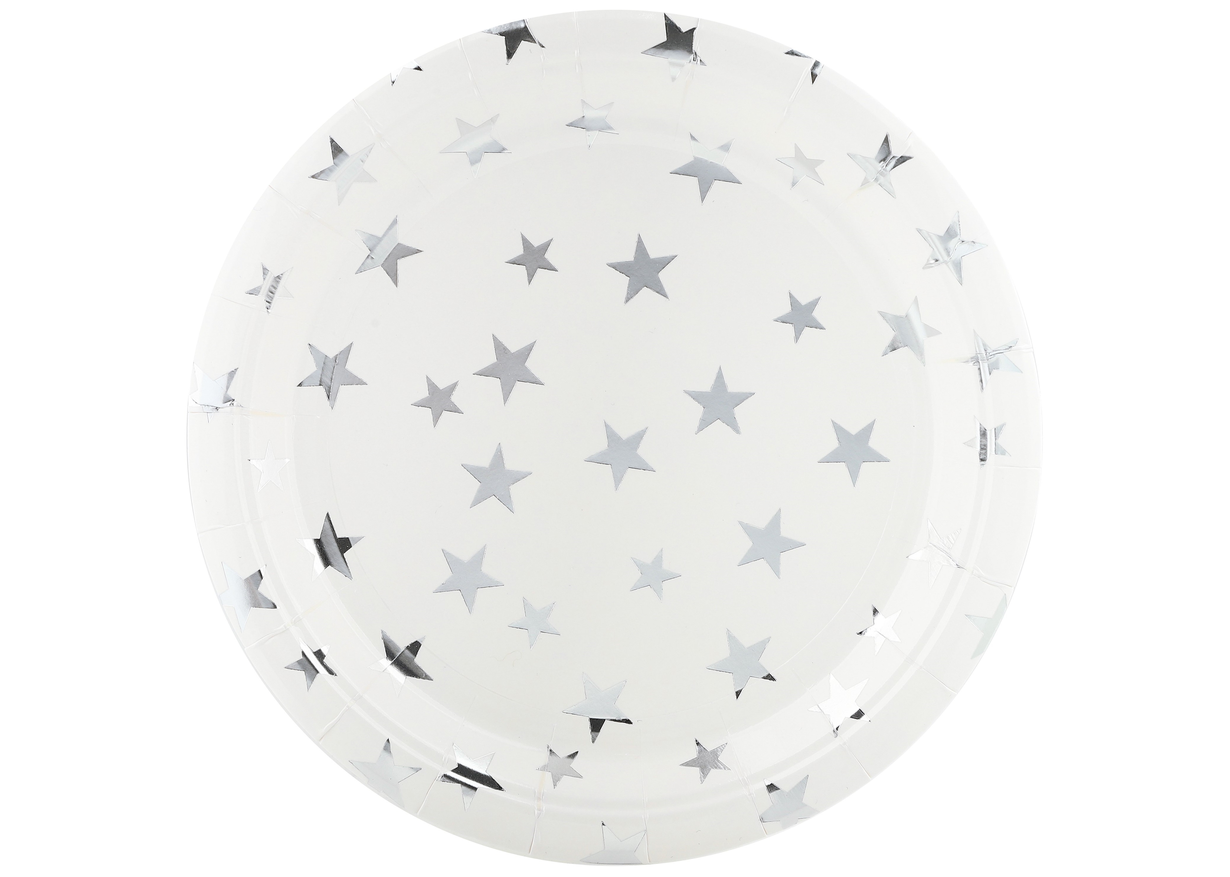 - Тарелка бумажная 23см 6231902 Серебристые звезды, белый/серебро 6шт