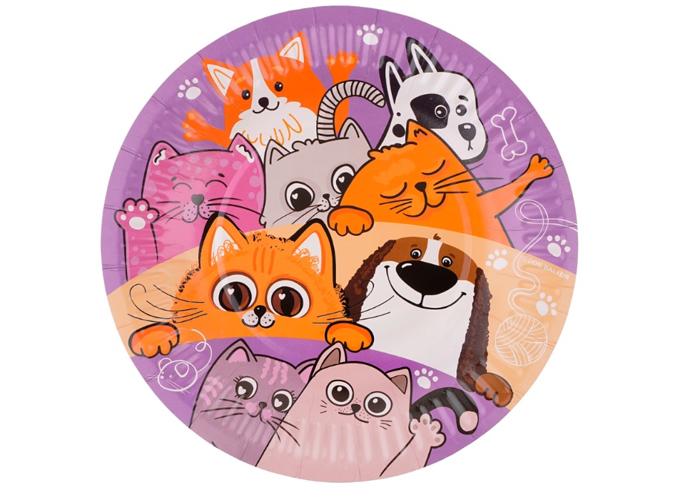 Тарелка бумажная 18см 77518 Кошечки, Собачки 6шт