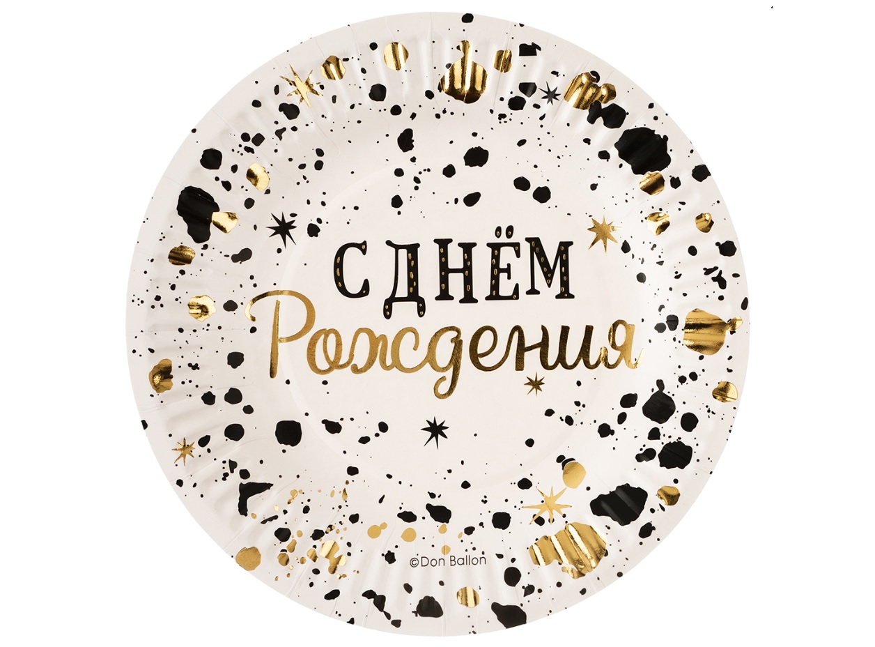- Тарелка бумажная 18см 77558 С Днем Рождения, изысканный стиль
