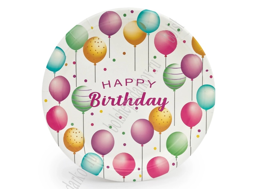 Тарелка бумажная 18см 77201 Праздничные шарики, С Днем Рождения! 6шт