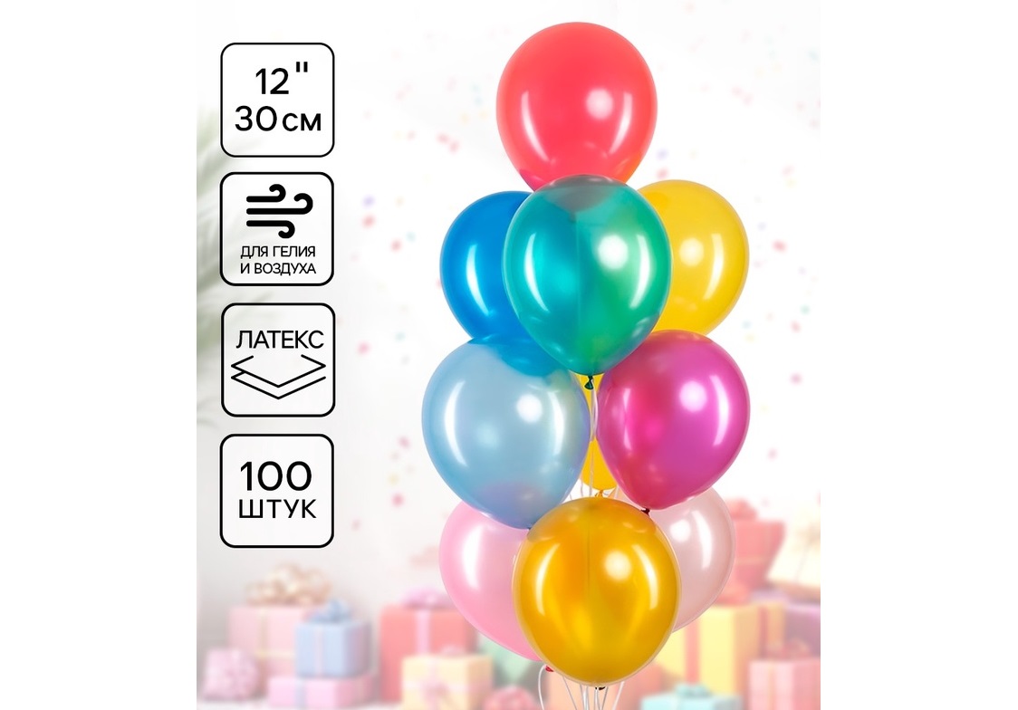 - Шар надувной 12 Металлик ассорти (100шт) 10948696/612250